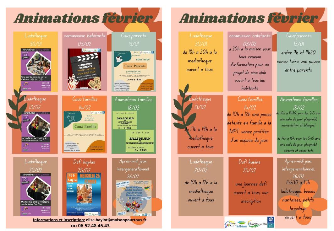 Récap des animations de février 2026Les dates à retenir pour février 2026