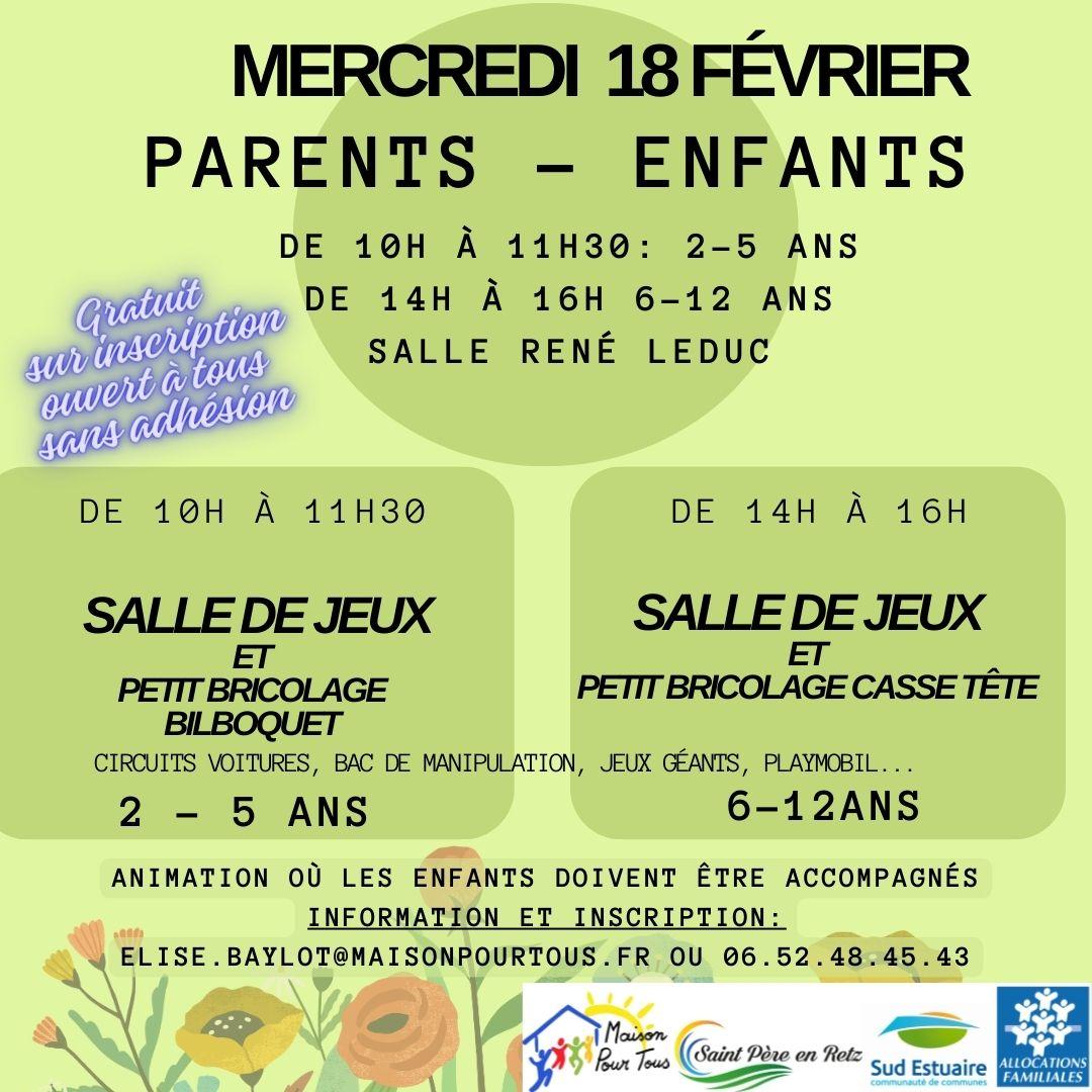 Tous les premiers mercredis des vacances retrouvez l'activité parents/enfants.